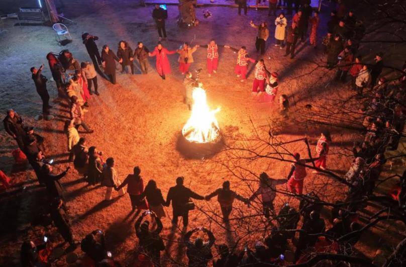 各协会会员与村民举办篝火晚会。王玉春摄