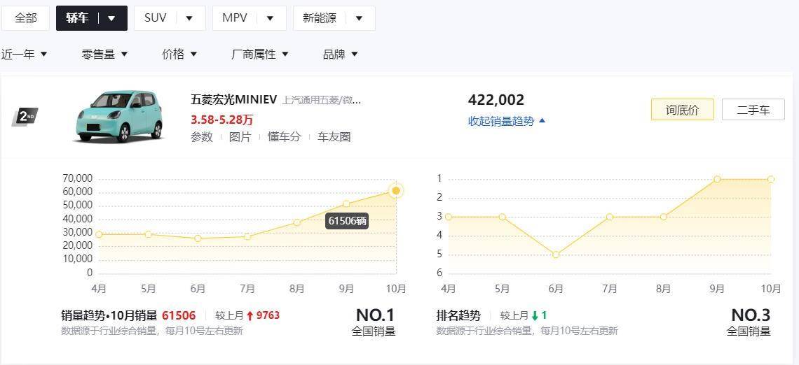 要说微型车市场乃至整个新能源汽车市场里最热销的“爆款神车”,五菱宏光MINIEV车系绝对能留下最浓墨重彩的一笔。要知道,即使是在2025年的今天,五菱宏光MINIEV最近一年的销量也仍然是高达42.2万台,由此可见,咱们国人对于这台微型纯电小车的需求量得有多大。